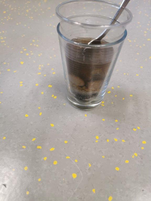Nach ca 24 Stunden mussten wir aus unserer Alaunlösung die überschüssige Flüssigkeit abgießen. Am Boden unseres Glases fanden wir viele kleine rote Kristalle, die für ein großes „WOW“ bei den Kindern sorgten.