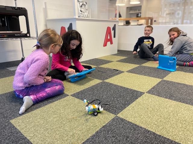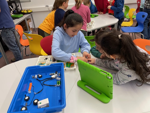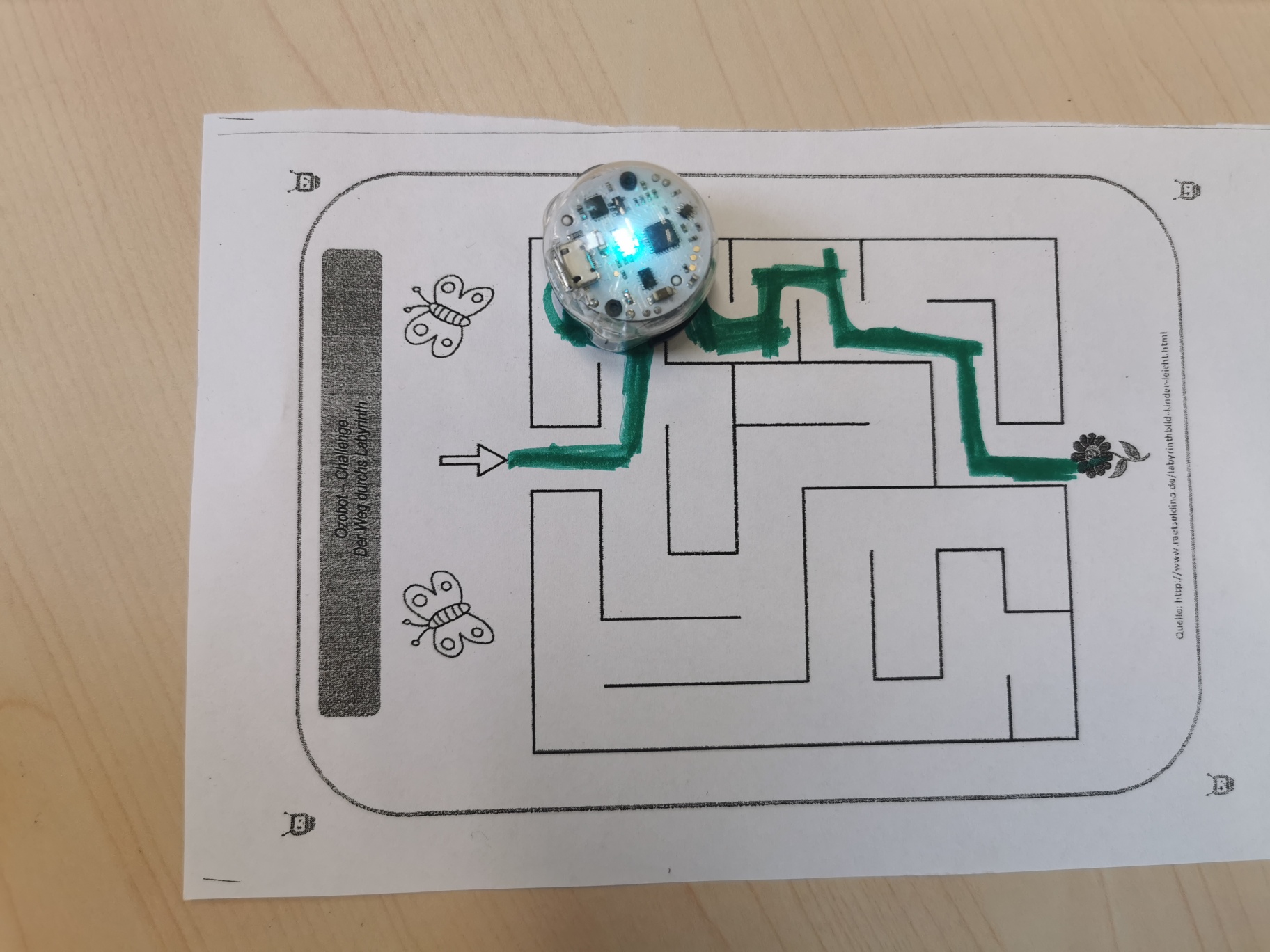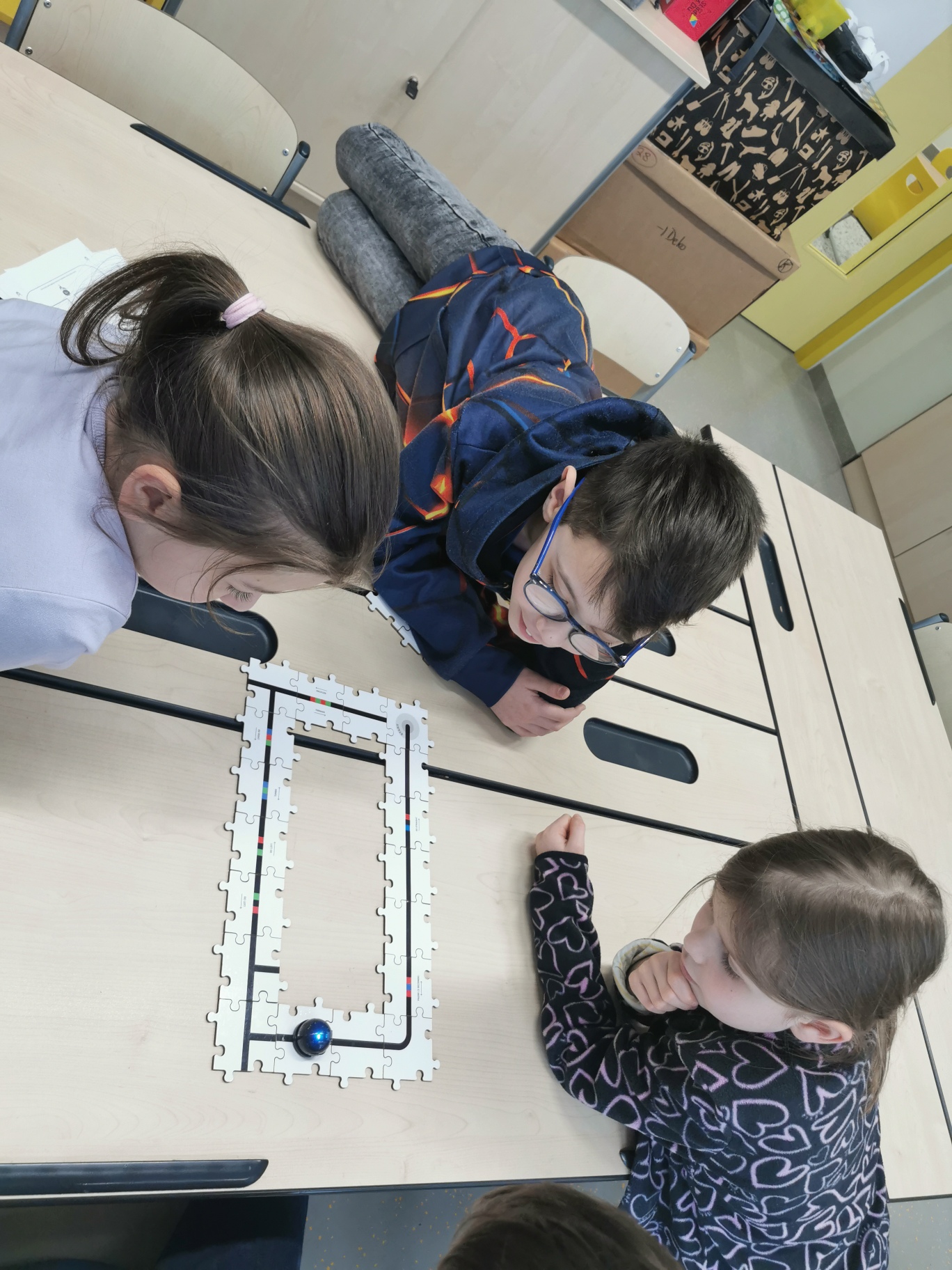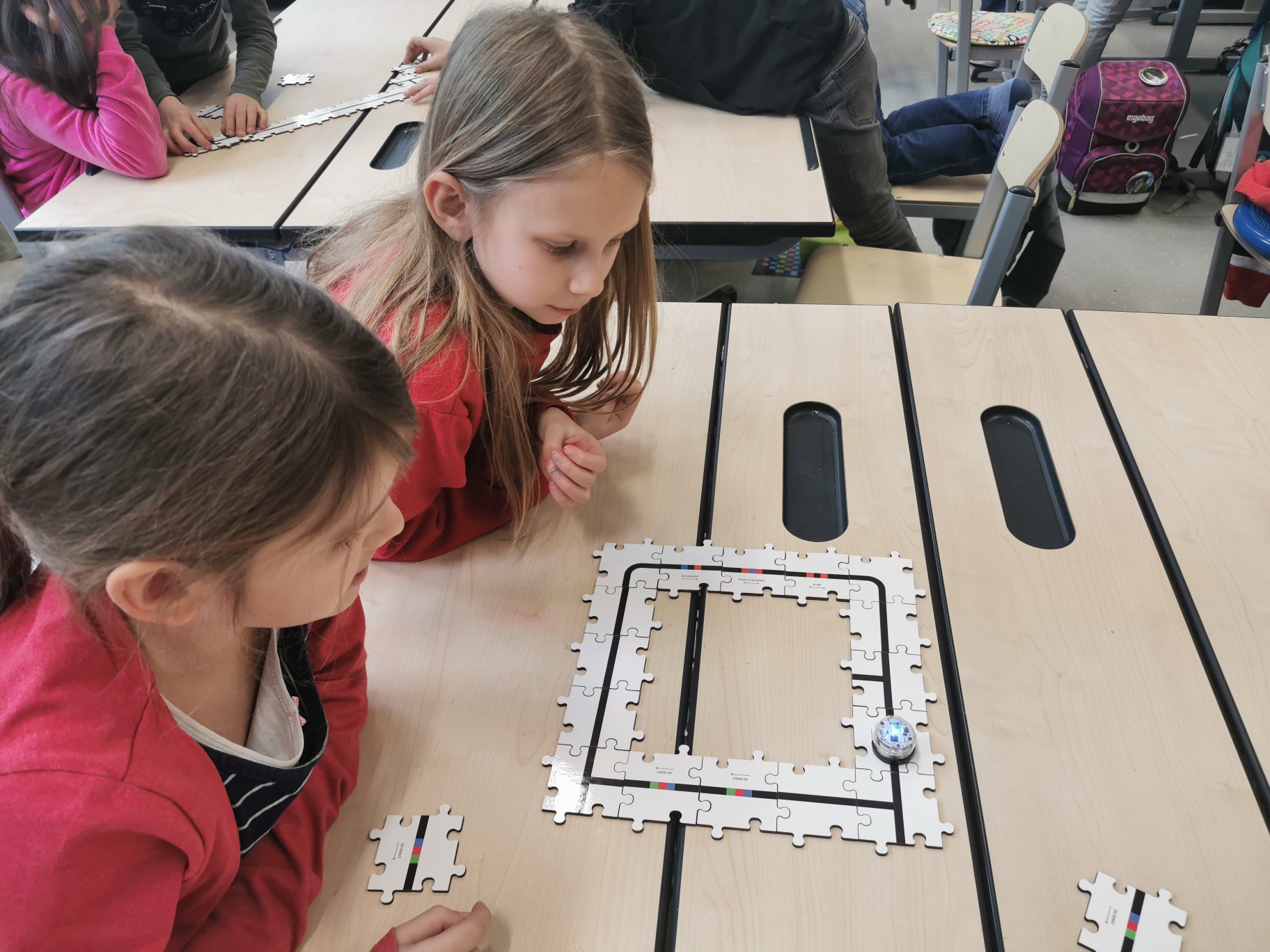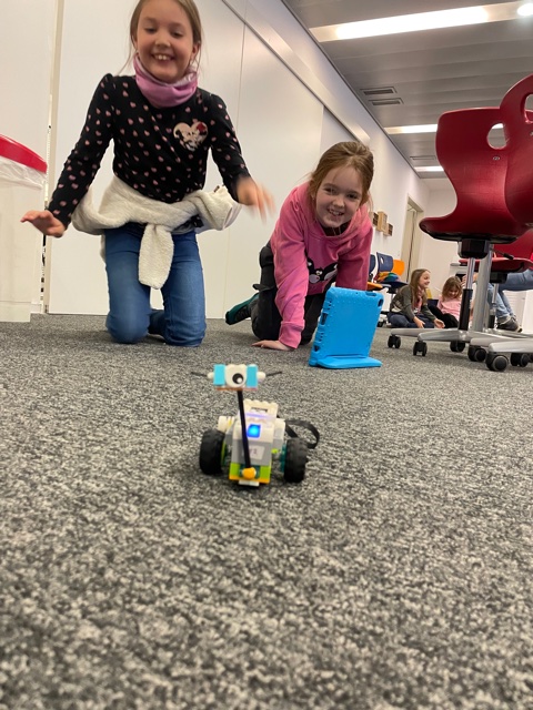 Zu Beginn des Workshops wurde mit den Kindern über die Funktion, das Aussehen und die Sinnhaftigkeit von Robotern gesprochen und wie sie unser Leben bereichern können. Anschließend wurde ihnen der Ozobot – Roboter vorgestellt. Der Ozobot-Roboter hat nur einen Durchmesser von 2,54 cm und ist damit der kleinste programmierbare Lernroboter der Welt. Trotz seiner geringen Größe hat es ein sehr leistungsfähiges Gehirn, um die Grundlagen der Programmierung und Programmierung auf unterhaltsame und intuitive Weise zu vermitteln. Mit Hilfe von Markern kann er einer Linie folgen und sein Verhalten ändern. Der Workshop hat den Kindern großen Spaß gemacht!