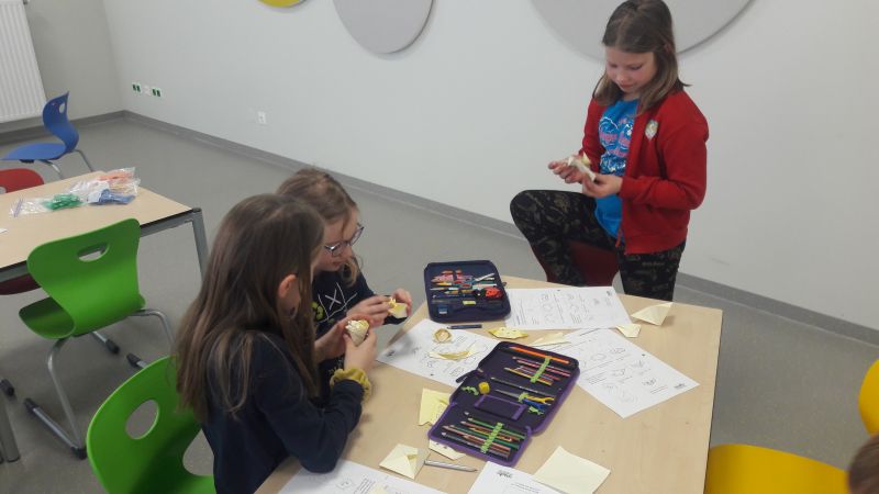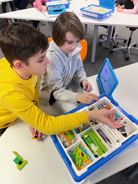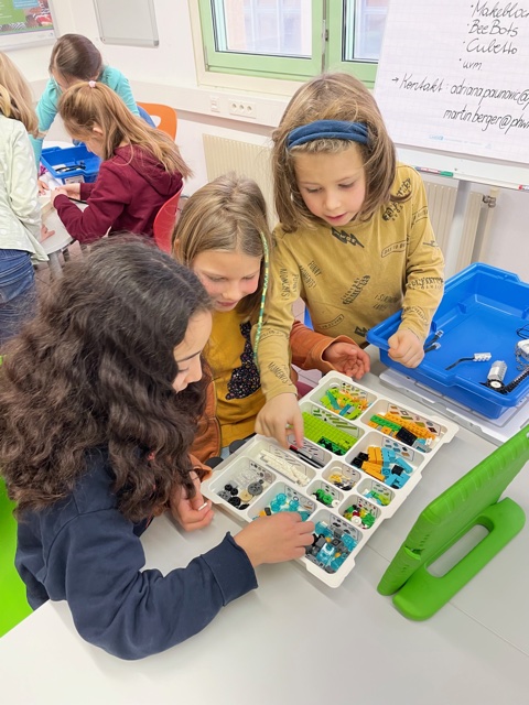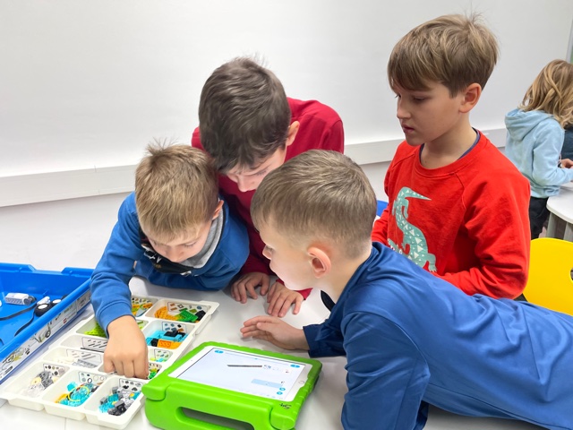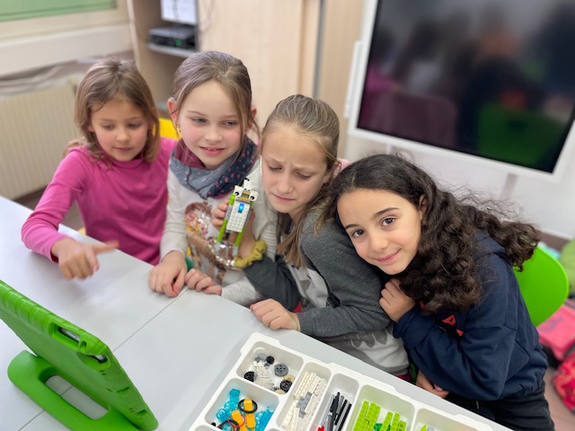 Zuerst wurde über den Einsatz von Robotern im Alltag gesprochen und danach arbeiteten die Kinder in Teams mit Lego – WeDo Boxen. Sie bauten leuchtende Käfer, Windräder, Forschungssonden, Roboter Detektive, etc. Danach ging es weiter mit dem Programmieren. Die Kinder waren so geschickt und schon bald bewegten sich alle gebauten Objekte, gaben Töne von sich bzw führten Befehle aus. Total beeindruckend!