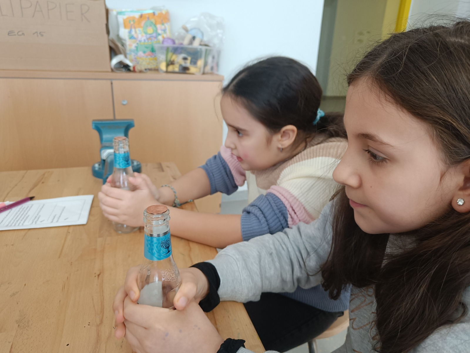 In der 3c stand am 25.11.das Thema Luft im Mittelpunkt des Sachunterrichts. Die Kinder beschäftigten sich an verschiedenen Lernstationen mit spannenden Experimenten rund um die Fragen: Was ist Luft? Welche Kräfte hat sie? Und wo begegnet sie uns im Alltag?Als kleine Forscherinnen und Forscher konnten die Schülerinnen und Schüler selbst ausprobieren, beobachten und entdecken. Mit viel Neugier und Begeisterung gingen sie den Phänomenen auf den Grund – ein echtes MINT-Projekt, das Freude am Entdecken und Verstehen weckte.