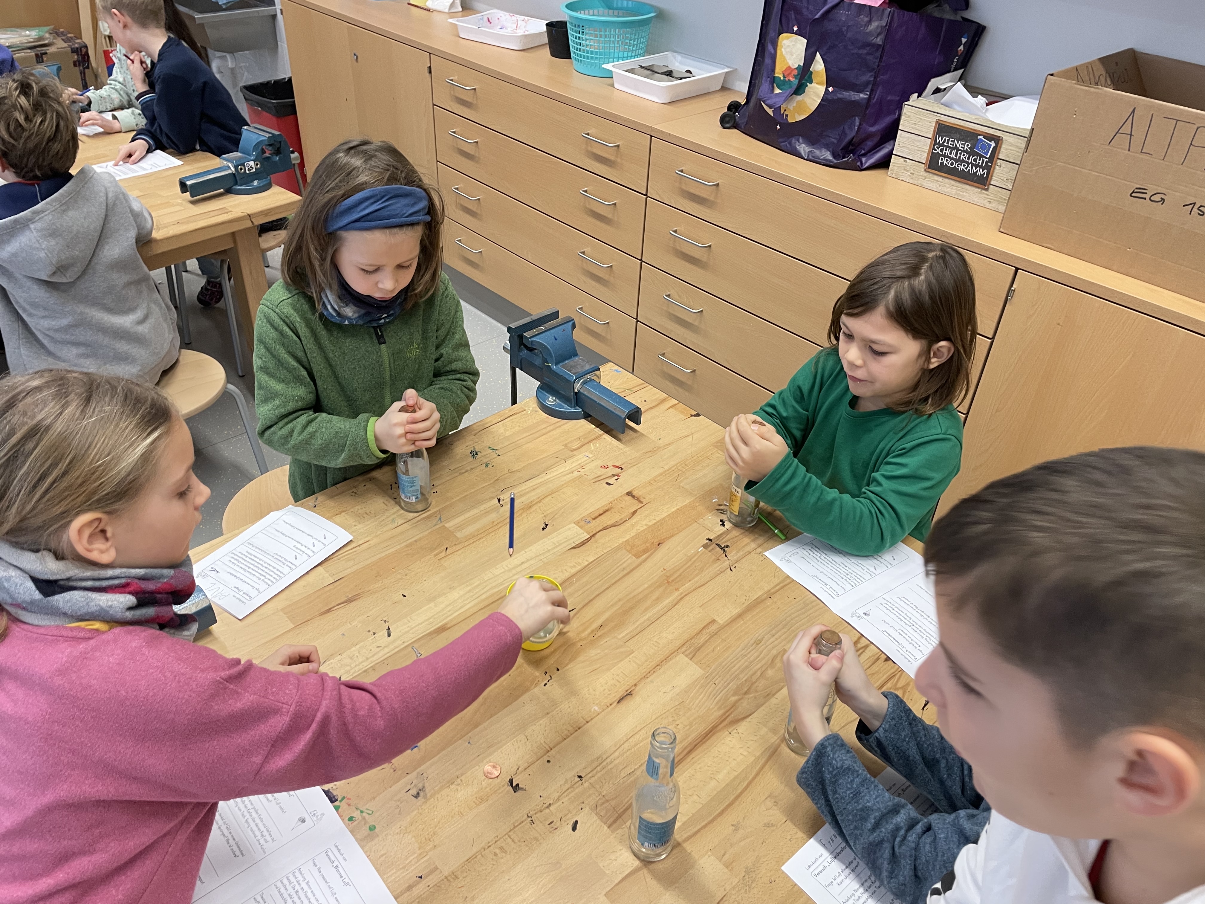 Die 2. Klassen hatten das große Glück, dass sie bei der Experimentierwerkstatt zum Thema Luft viele tolle Experimente ausprobieren konnten. DI Dr. techn. Johannes Sterba https://tiss.tuwien.ac.at/person/52092?locale=de vom Atominstitut der TU Wien https://www.tuwien.at/clip besuchte uns und die SchülerInnen erfuhren und lernten sehr viele interessante Dinge zum Thema Luftdruck, Luftwiderstand, Vakuum… An vier Stationen konnten die Kinder diverse Luftexperimente ausprobieren und ihre Vermutungen und Beobachtungen in ihrem Laborbuch festhalten. Das absolute Highlight war aber, dass am Ende noch eine Rakete im Schulhof steigen gelassen wurde (siehe Video weiter unten). Ein großes Dankeschön an Dr. Sterba für diesen spannenden und lehrreichen Vormittag! Es war einfach toll!!!