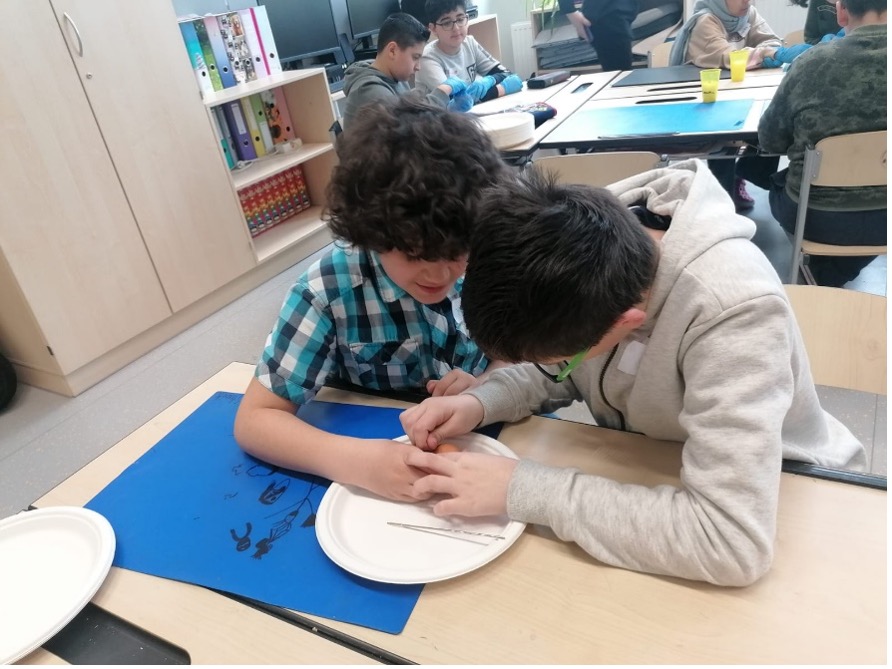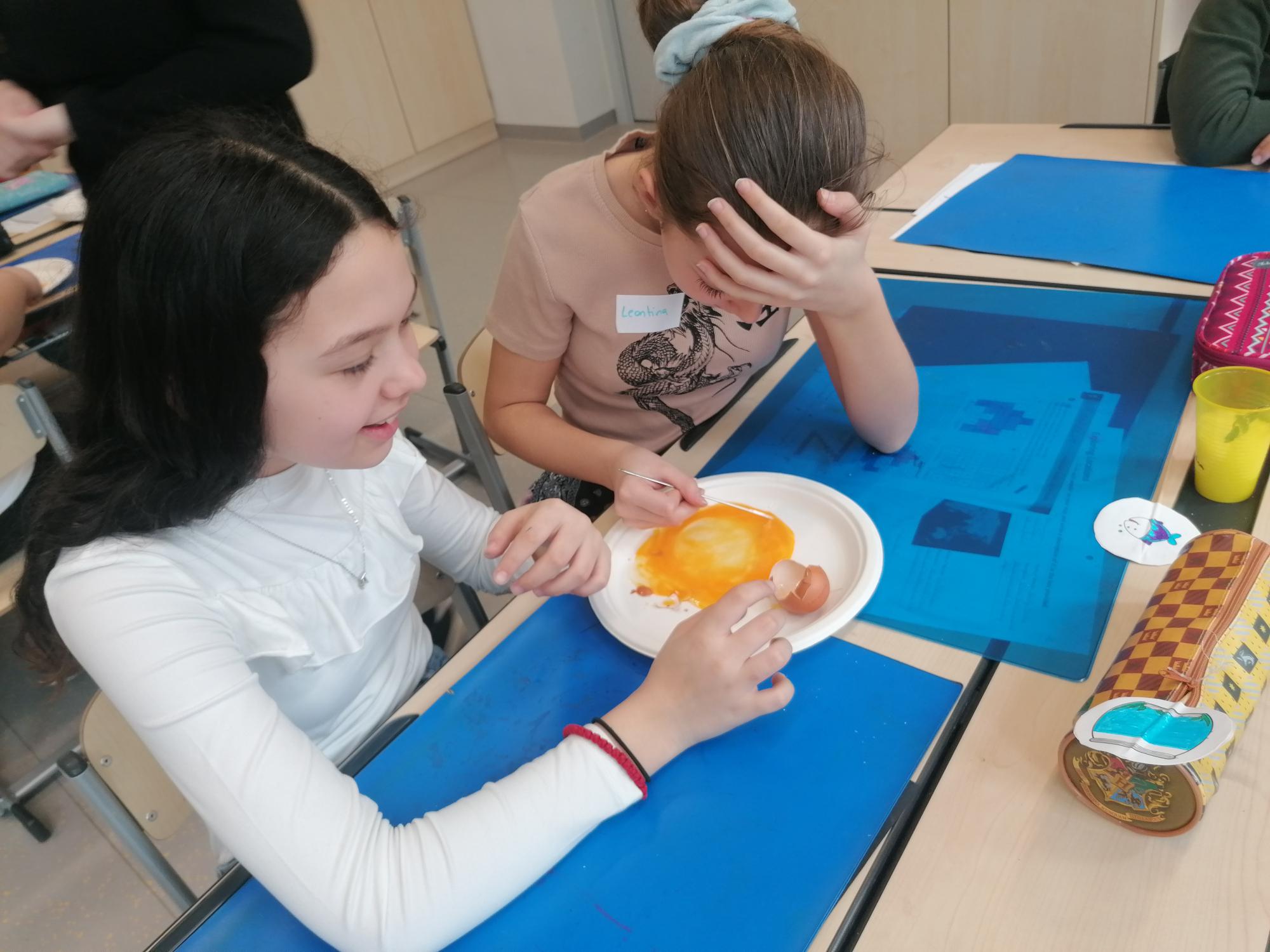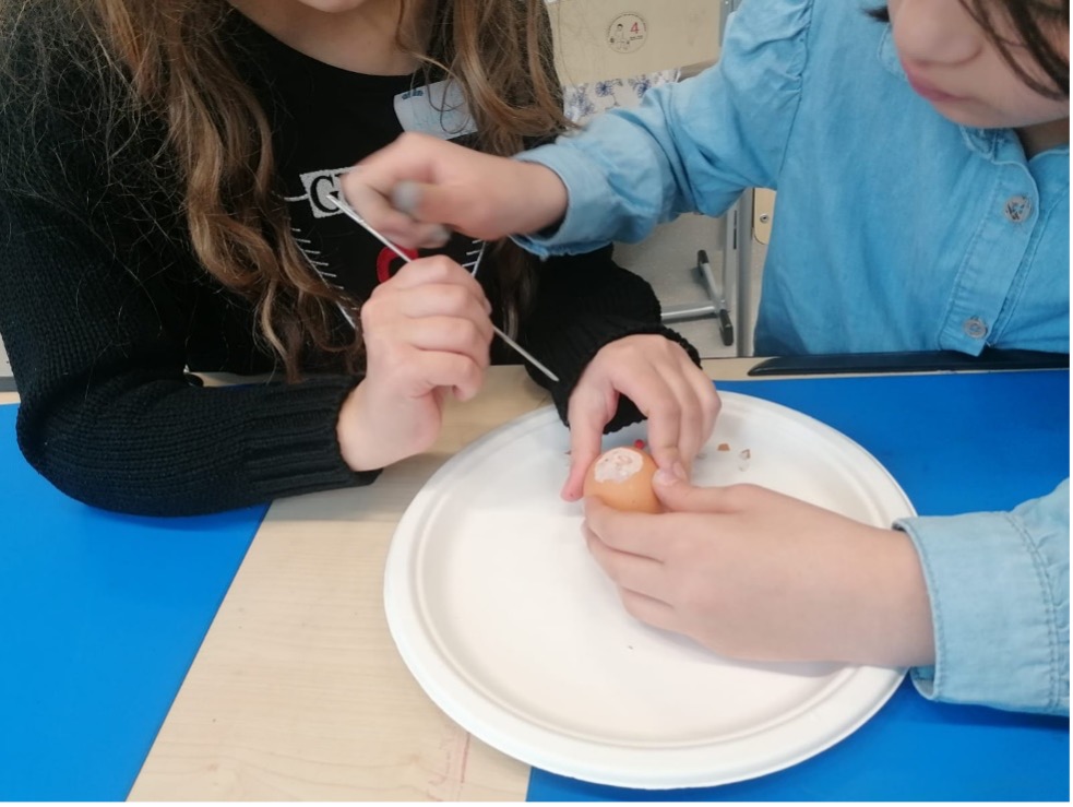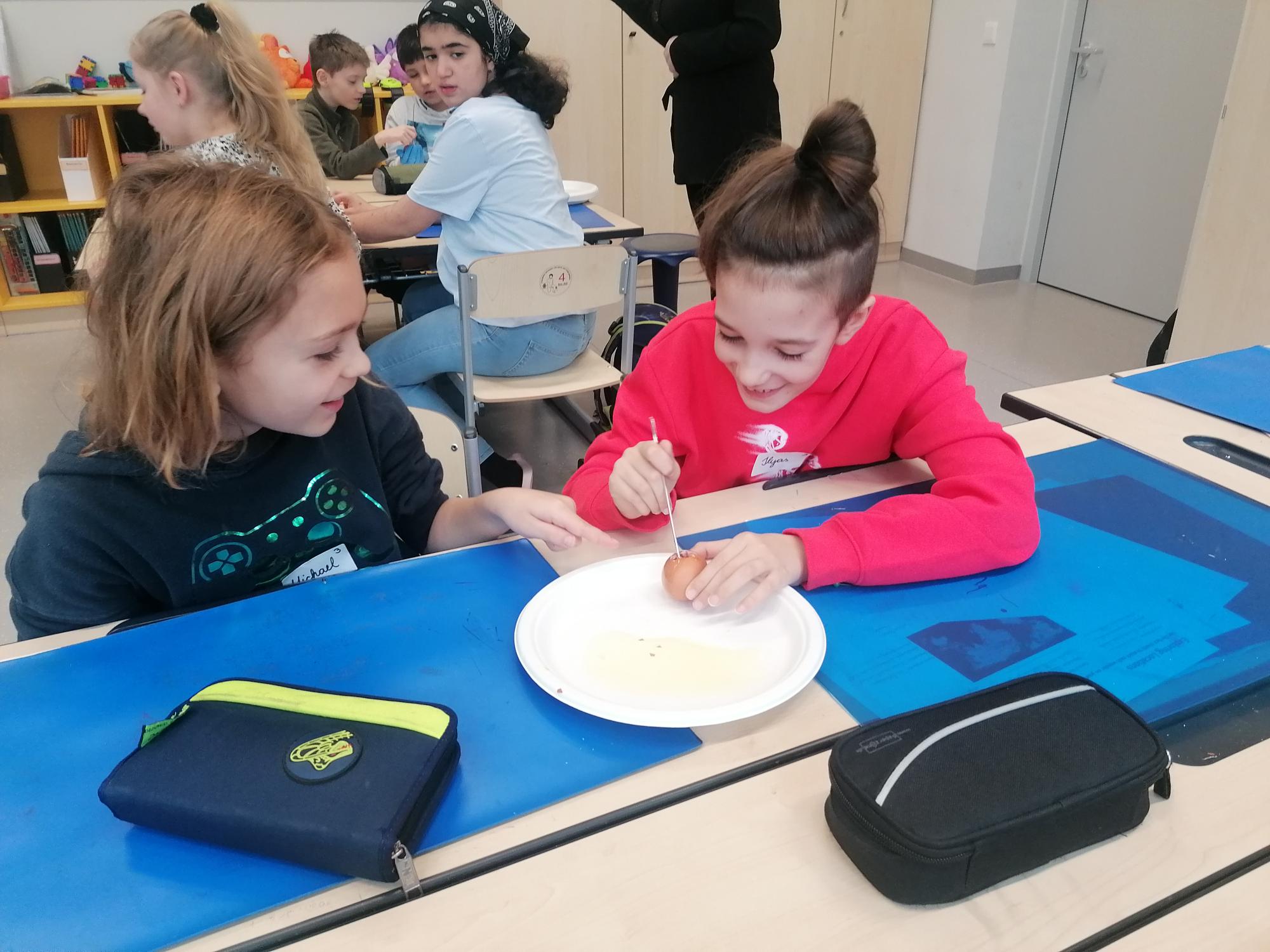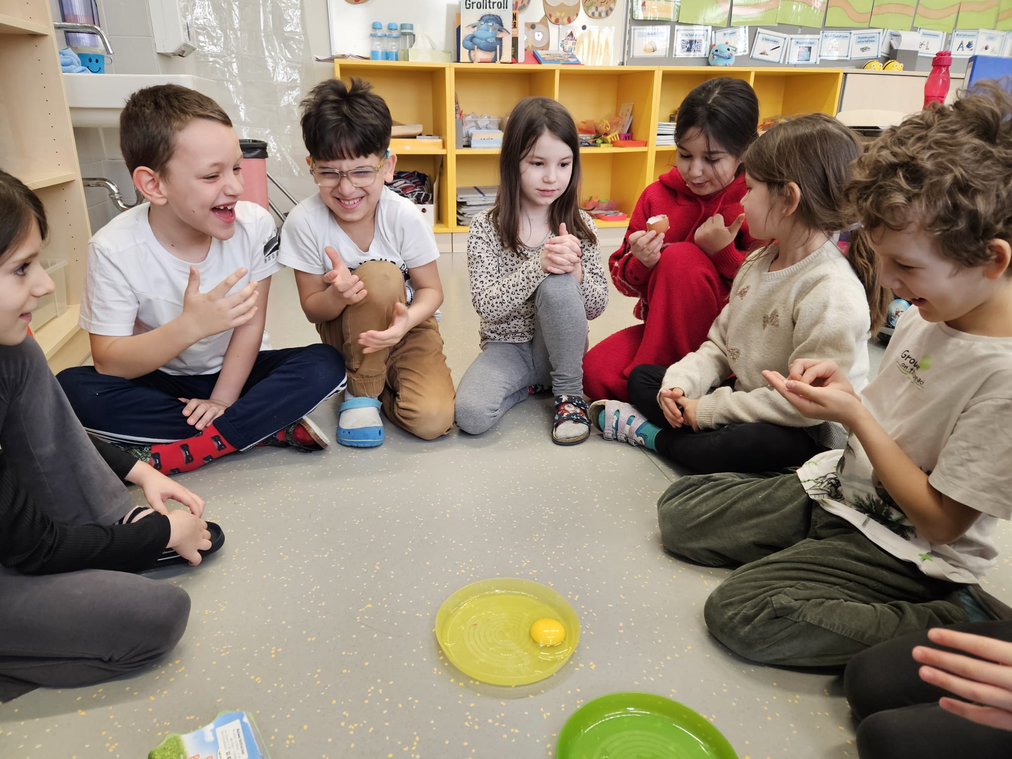 In der Woche vor Ostern haben die Kinder der 1c Eier untersucht. Anschließend wurde in einem Experiment die Wirkung von Essig auf die Kalkschale des Eis getestet.