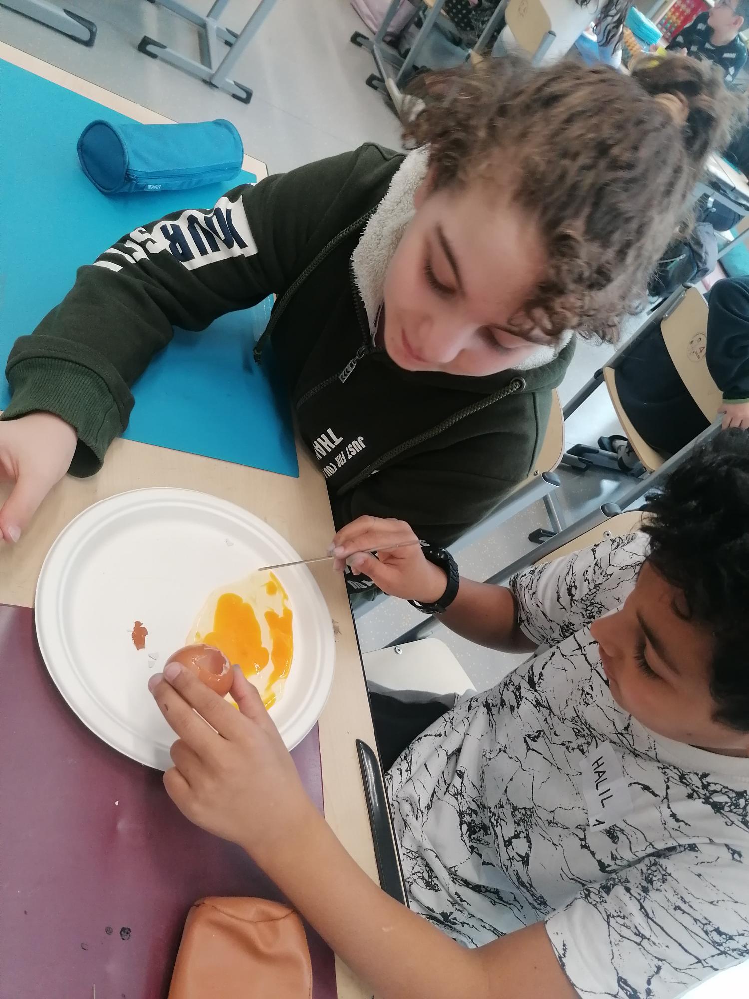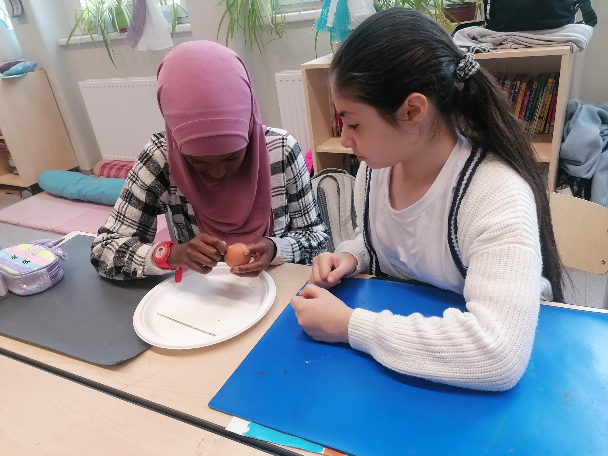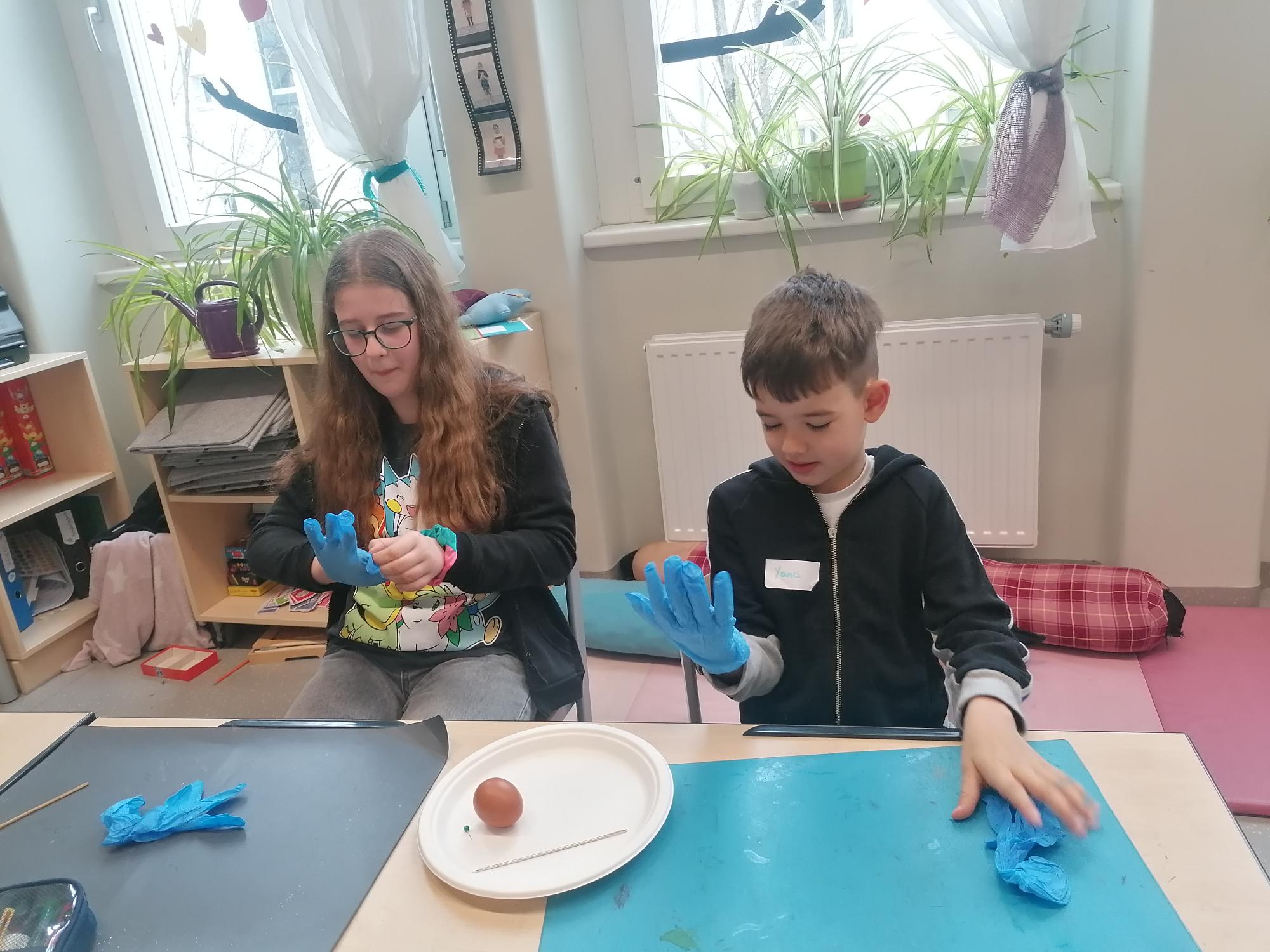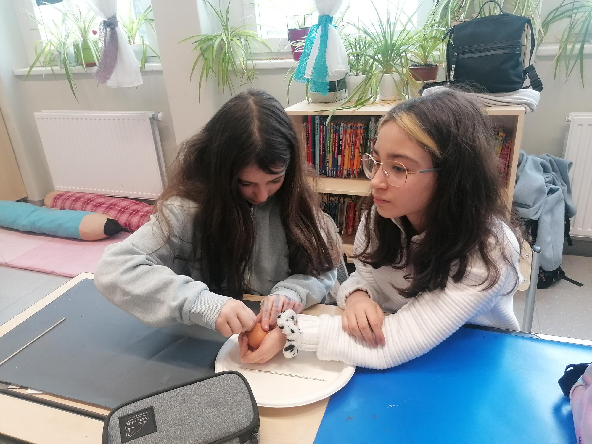 In der Woche vor Ostern haben die Kinder der 1c Eier untersucht. Anschließend wurde in einem Experiment die Wirkung von Essig auf die Kalkschale des Eis getestet.