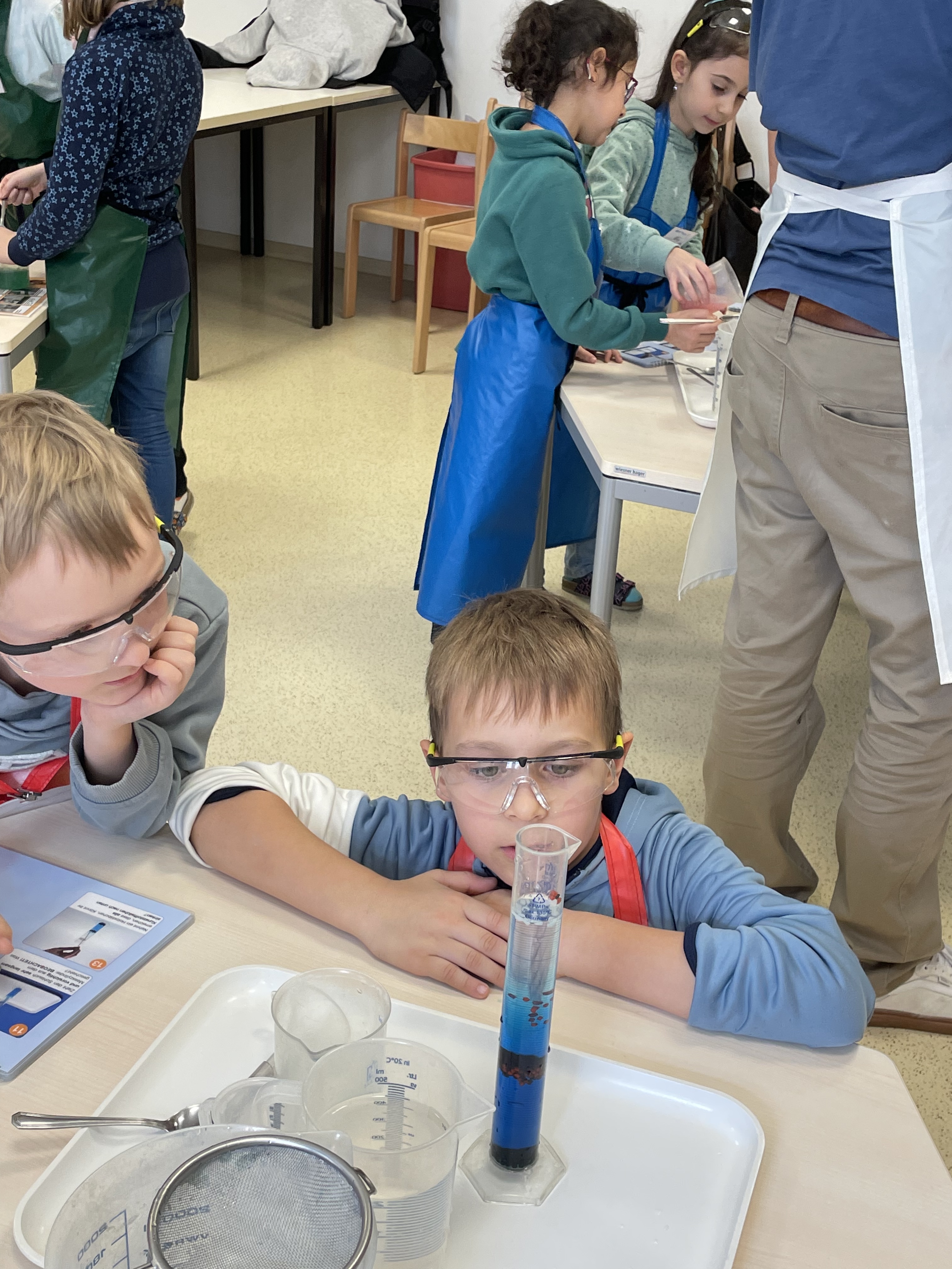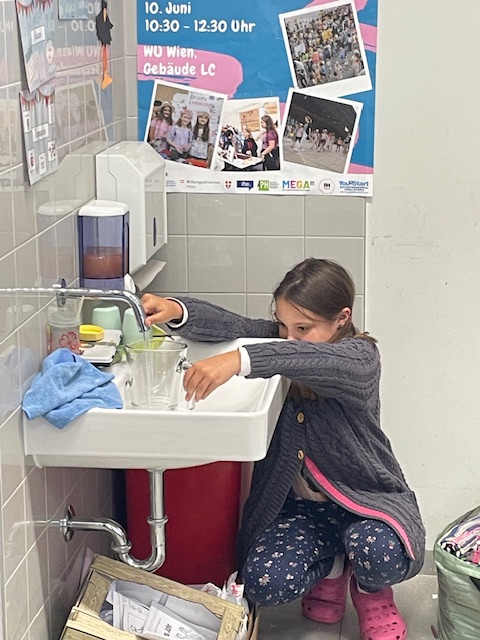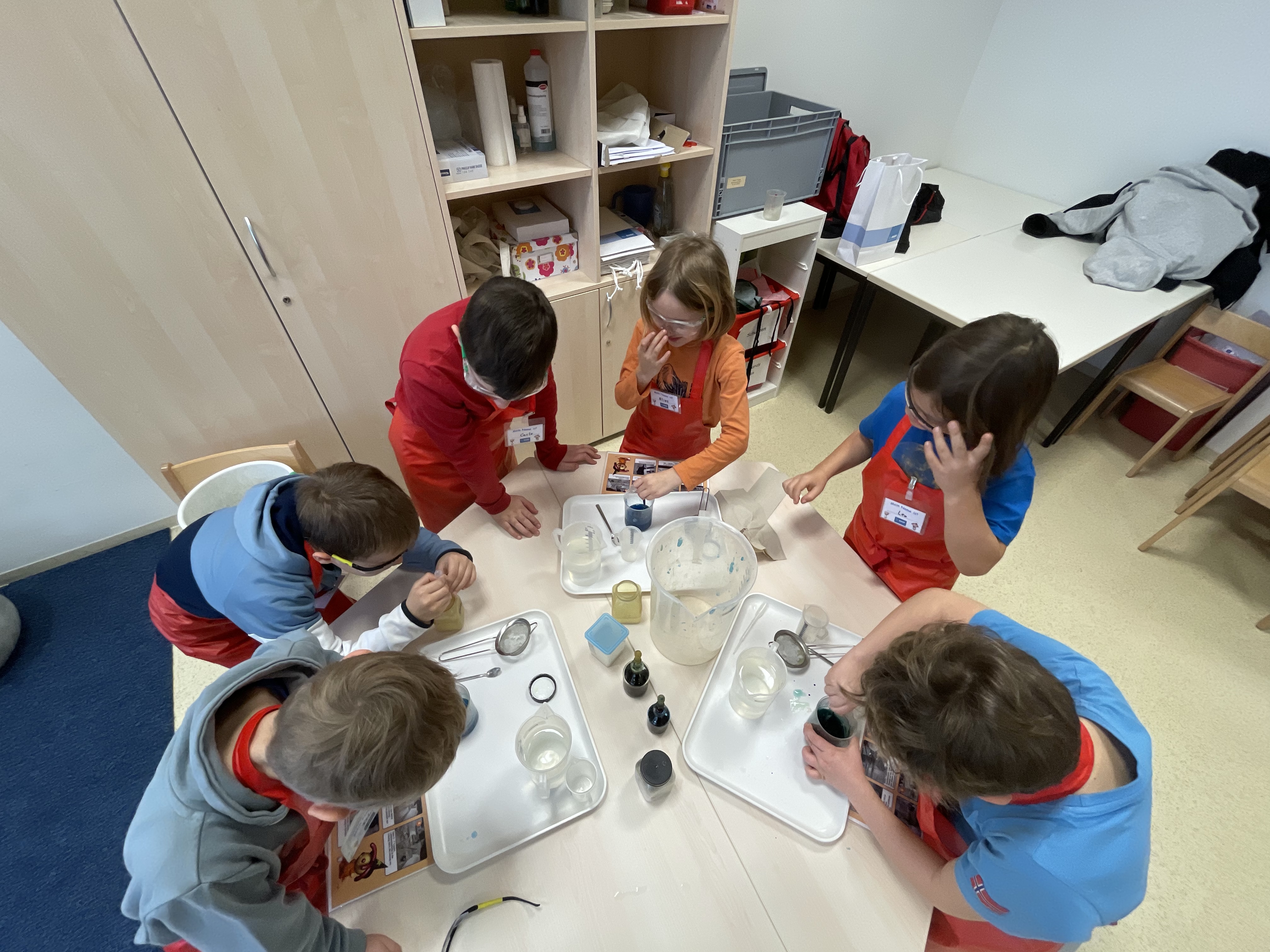 von 7 bis 10 Jahren. Im Zuge eines sehr spannenden und lehrreichen Workshops arbeiteten die Kinder selbstständig an zwei Experimenten zum Thema Wasser und an der Erzeugung von Schleim. Geforscht wurde in betreuten Gruppen von 6 Kindern pro Gruppe.