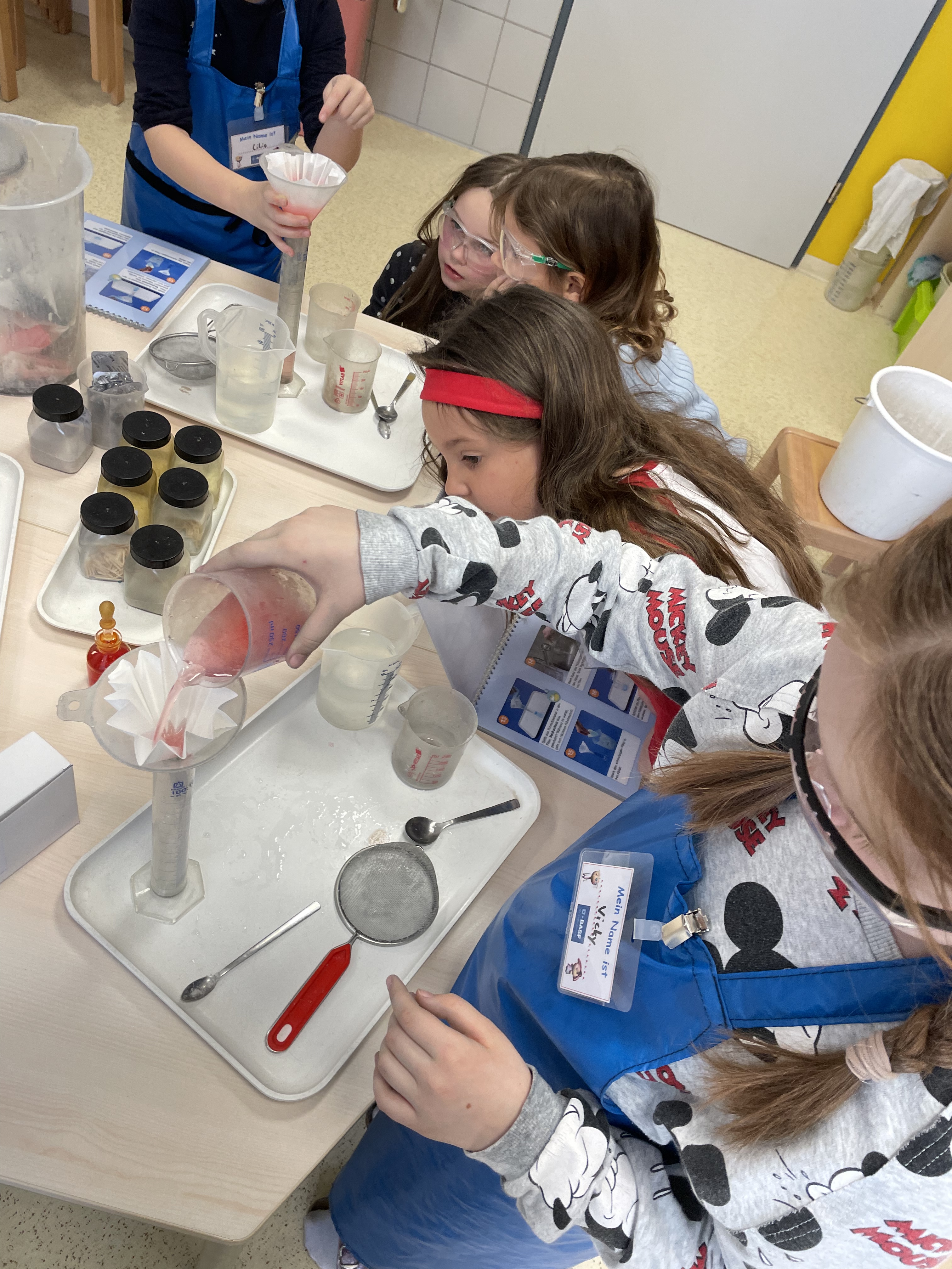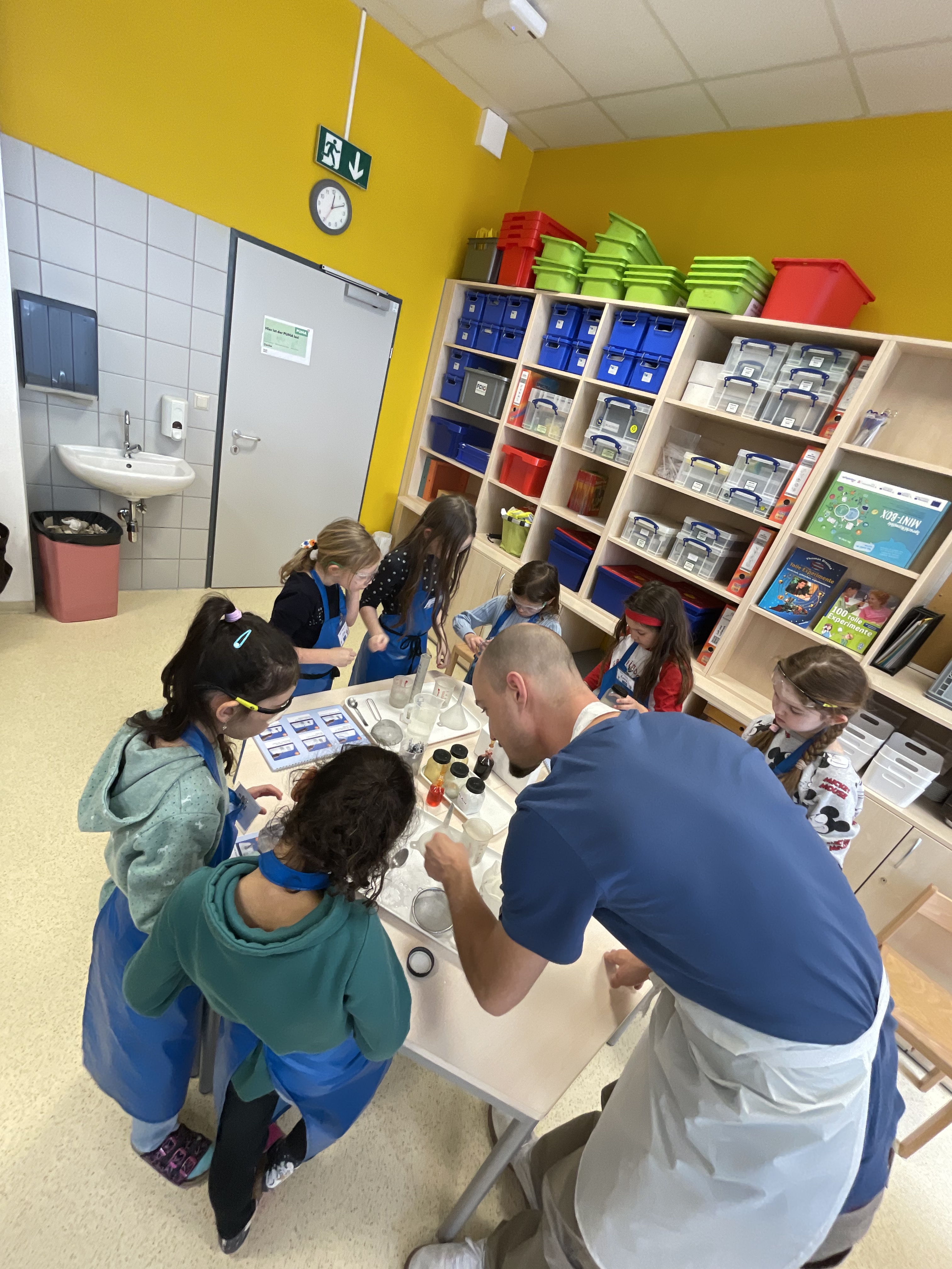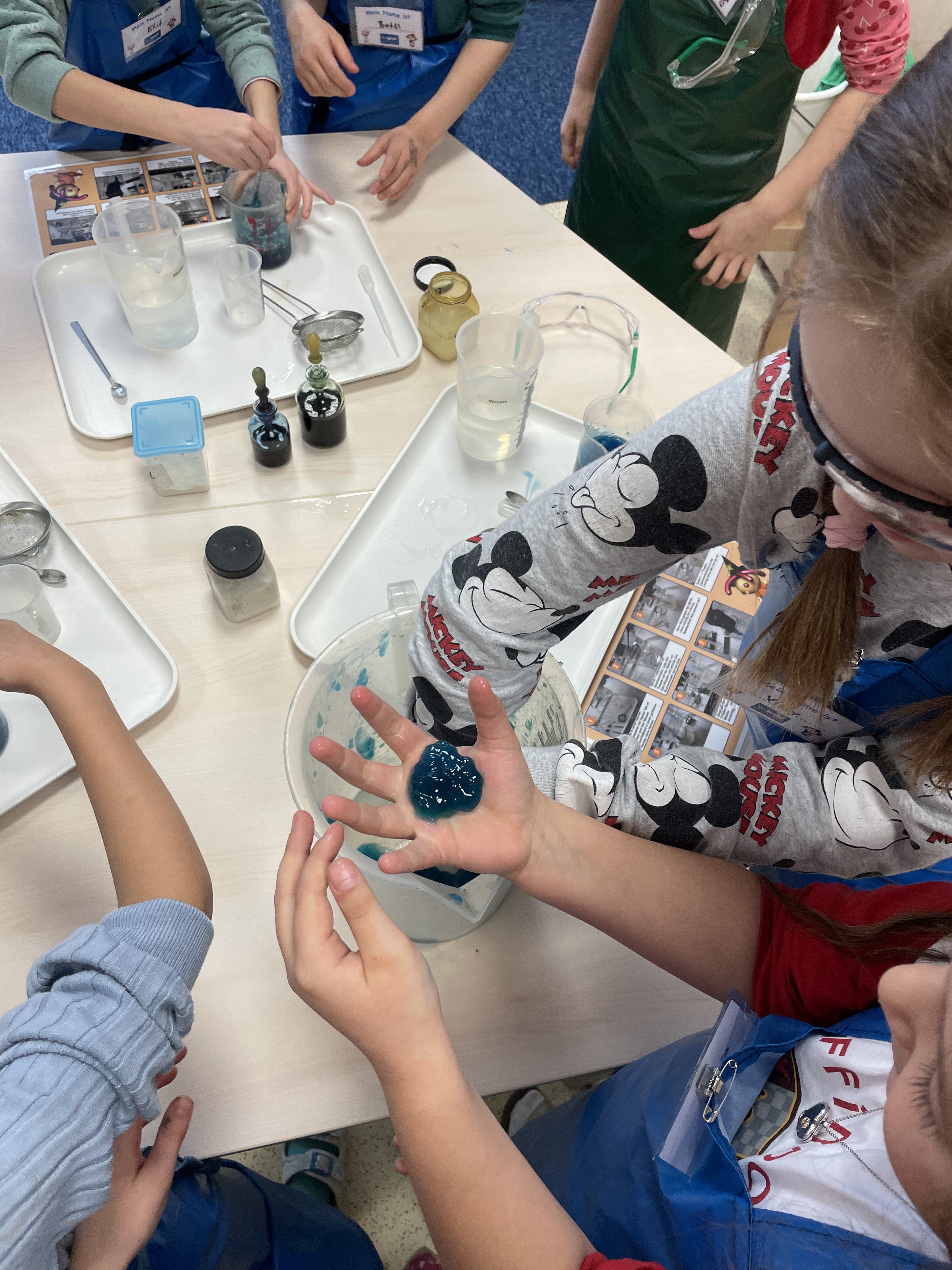 von 7 bis 10 Jahren. Im Zuge eines sehr spannenden und lehrreichen Workshops arbeiteten die Kinder selbstständig an zwei Experimenten zum Thema Wasser und an der Erzeugung von Schleim. Geforscht wurde in betreuten Gruppen von 6 Kindern pro Gruppe.