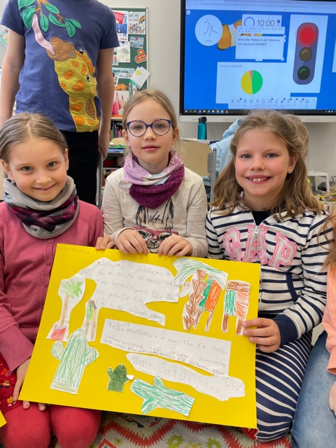 Bei einem unserer fächerverbindenden Projekte hat uns Frau Margret Groier aus der Redaktion eines großen Printmediums einen Vormittag lang begleitet. Gemeinsam bereiteten wir einen Zeitungsartikel vor. Auch Nele, das neugierige Maskottchen der Kinderzeitung, war bei uns in der Klasse und schaute über unsere Schultern!