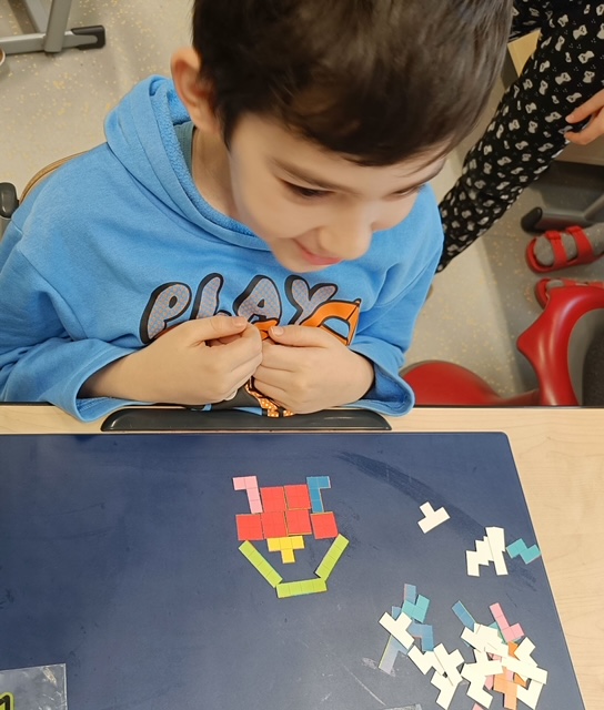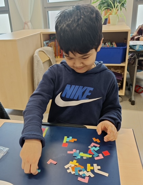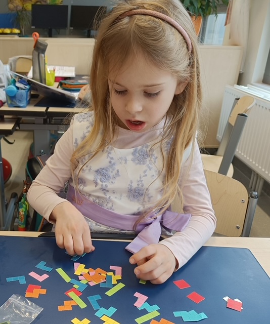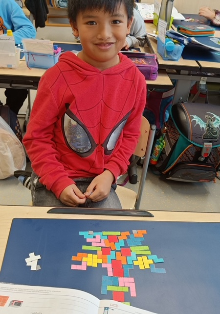 Wir sind ja schon echte Malreihenprofis, aber es macht auch wirklich viel Spaß und bringt unsere Köpfe zum Rauchen, wenn wir auch einmal in eine andere Richtung denken. Kennt ihr Tetrominos? Schaut einmal, wir haben so viele verschiedene Figuren nachgelegt und auch selber erfunden!