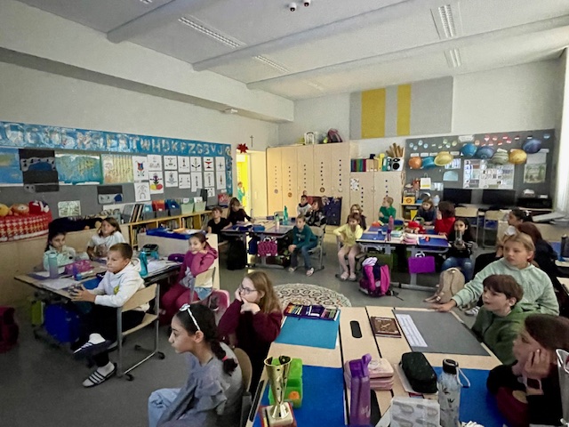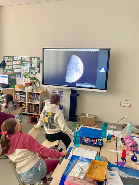 Dr. Habison führte die Kinder auf eine faszinierende Reise durch den Weltraum und erklärte alles auf eine besonders anschauliche und kindgerechte Art und Weise. Die Begeisterung war groß, und es gab viele Fragen, die der Experte mit viel Geduld und Wissen beantwortete.
