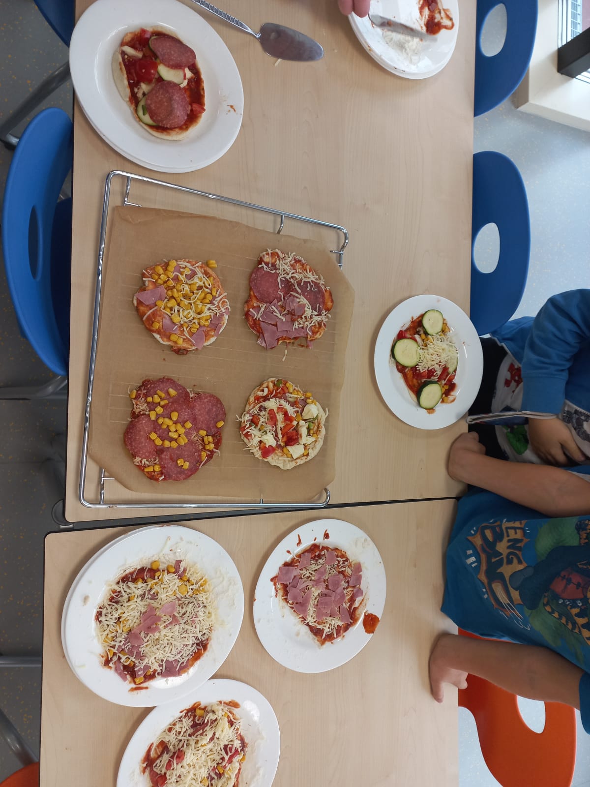 Wir haben unsere eigene Pizza gemacht.