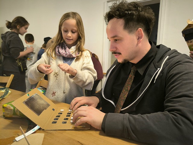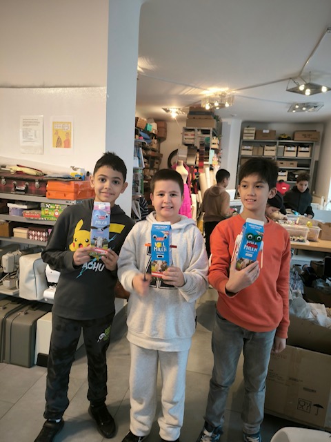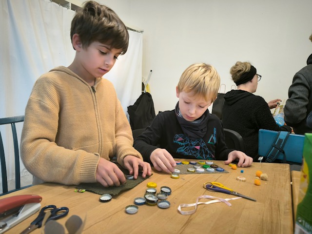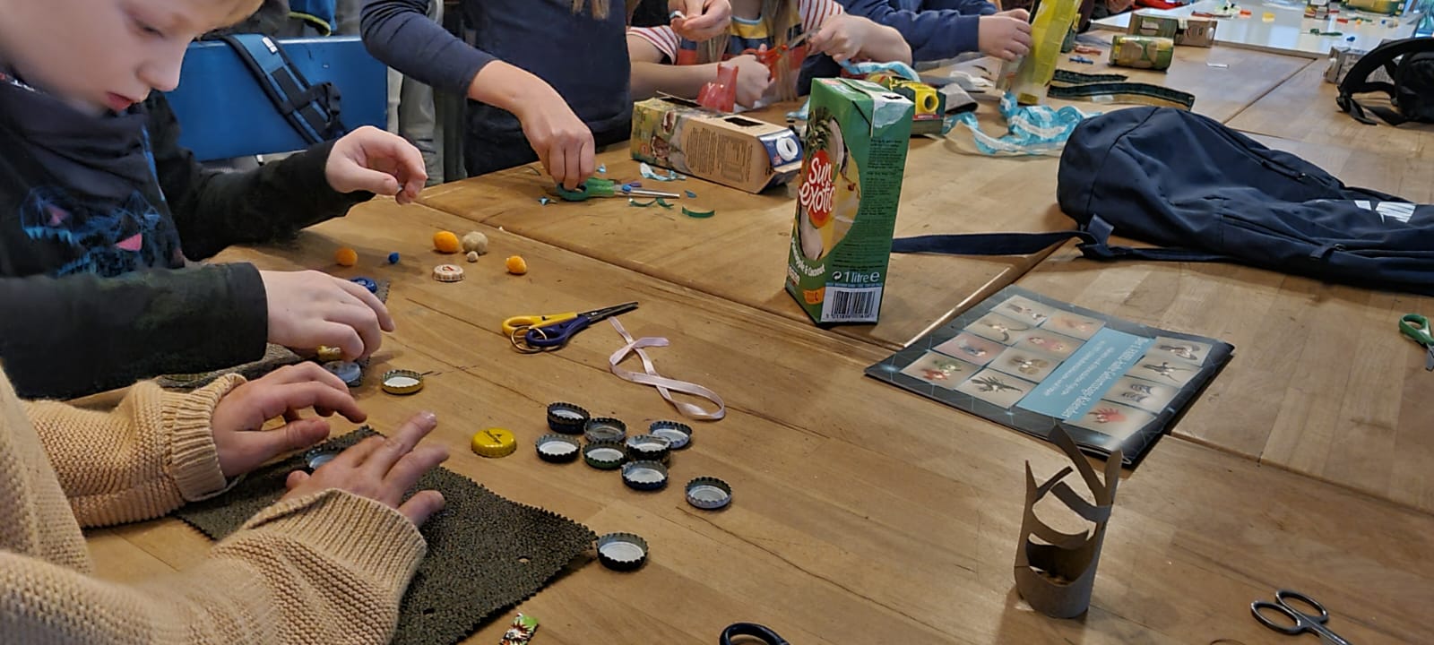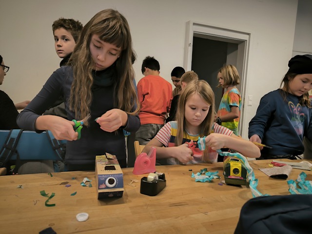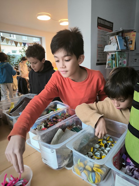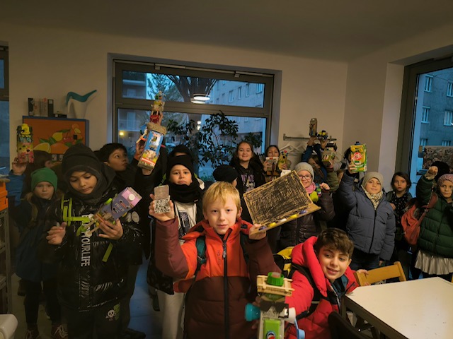 Die Kinder haben Upcycling u.a aus Tetra Pak’s gemacht und mit diversen Stoffen, Schraubverschlüssen und allerlei beklebt. Geschaffen wurden Roboter, Laptops, Schmuck und Christbaumanhänger.