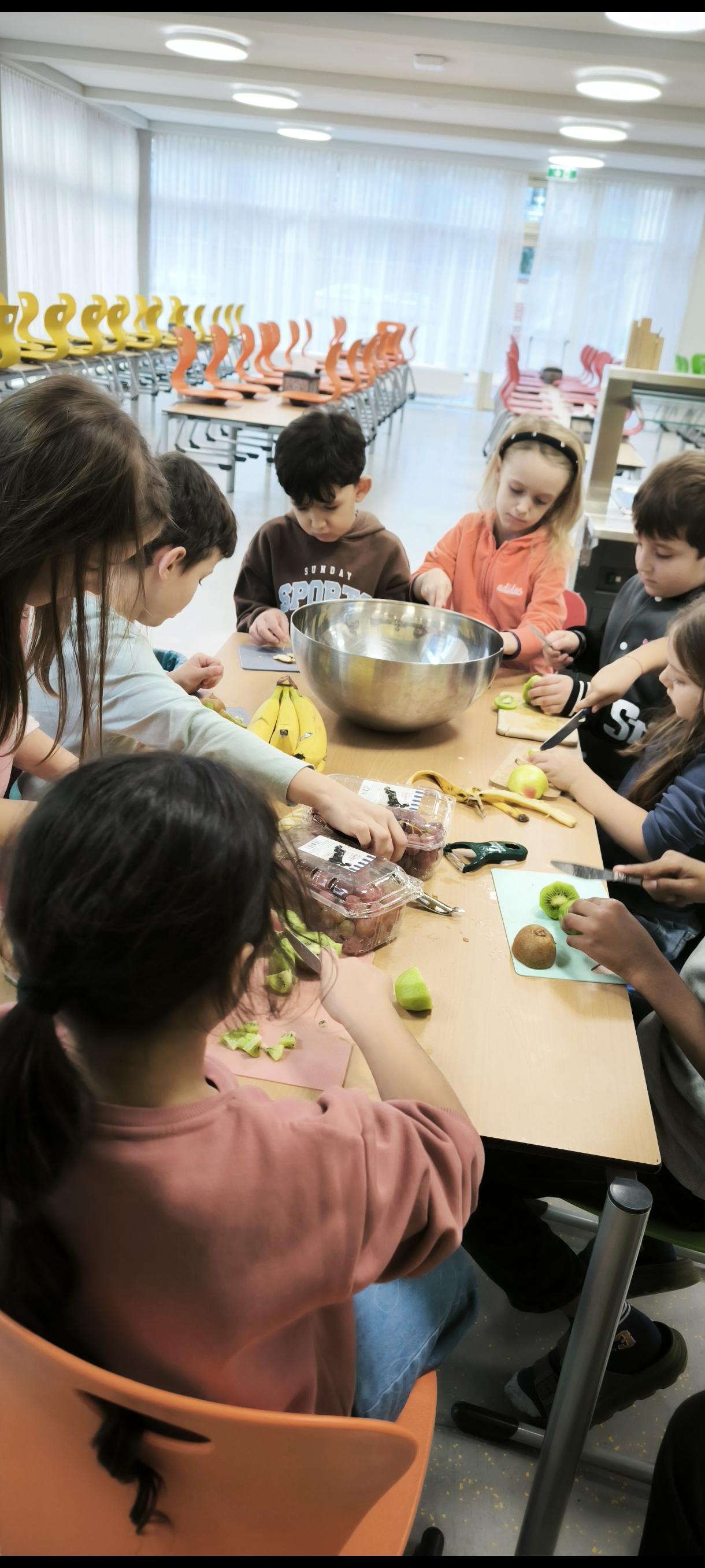 Am Nachmittag haben die Kinder mit viel Freude Schokomuffins gebacken und einen frischen Obstsalat zubereitet. Gemeinsam genießen macht Spaß und schmeckt!
